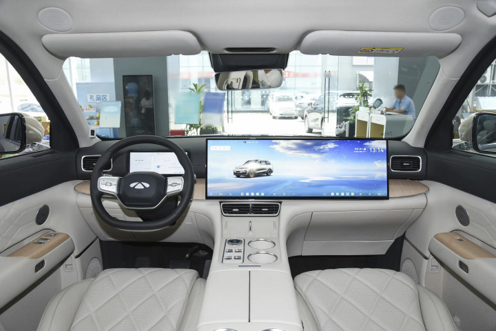 这款车看着是六座的大个子,设计上还挺有意思。前脸那栅栏条纹密密麻麻,像鱼鳞似的闪着光,车灯细长细长的藏在里头,远看就像是睁着双眼。最绝的是选颜色,居然能挑出极光绿、胭脂红这些花哨的,光是涂装工艺就花了不少心思。坐进去那感觉更不得了,座椅跟家里的沙发一样软和,中控屏大得能当电视看,后排还吊着个吸顶屏幕,带孩子玩的时候都得笑出声来。