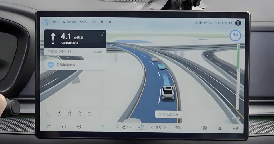 在高速上行驶,这套系统不仅能识别前车速度和距离,进行刹车和加速,还能根据导航进行自主变道和上下匝道,连最高车速都遵循限速规定,所以在高速上行驶,基本上定好导航,手扶方向盘就可以了,在一些施工或者事故现场,人为介入一下也就可以了,开个几百公里,基本上也不会疲劳。