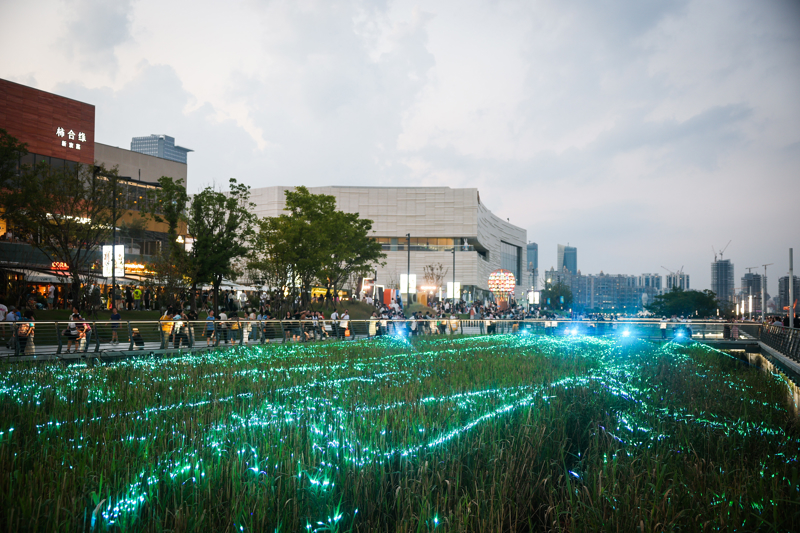 点点“流萤”在西岸梦中心滨江的草丛间闪烁跃动。 海沙尔摄